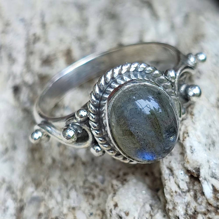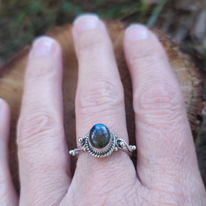 Iolite Anello etnica MANTRA in argento 925 ANELLO artigianale con pietra | GIOIELLI etnici
