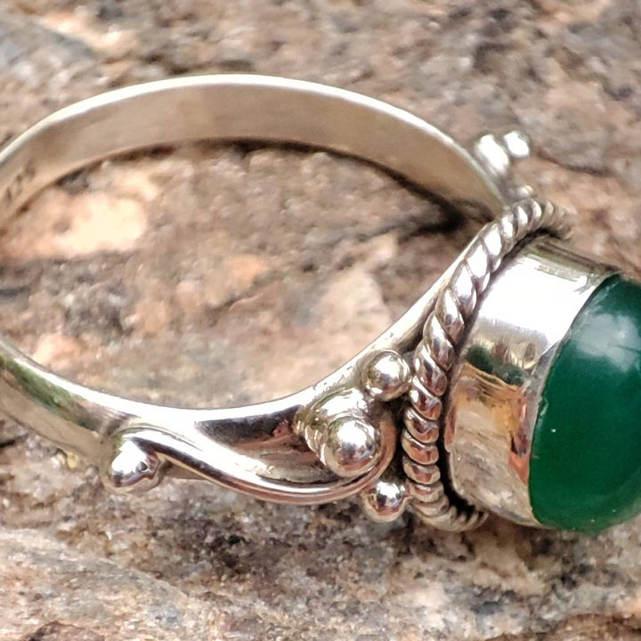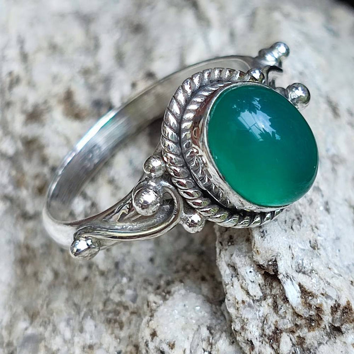 In addition to this the surface of the ring is partially burnished and the ethnic design with cabouchon stone. The ring is also made of hypoallergenic 925 silver. In fact, its surface is not treated or plated and therefore guarantees its beauty over the years.