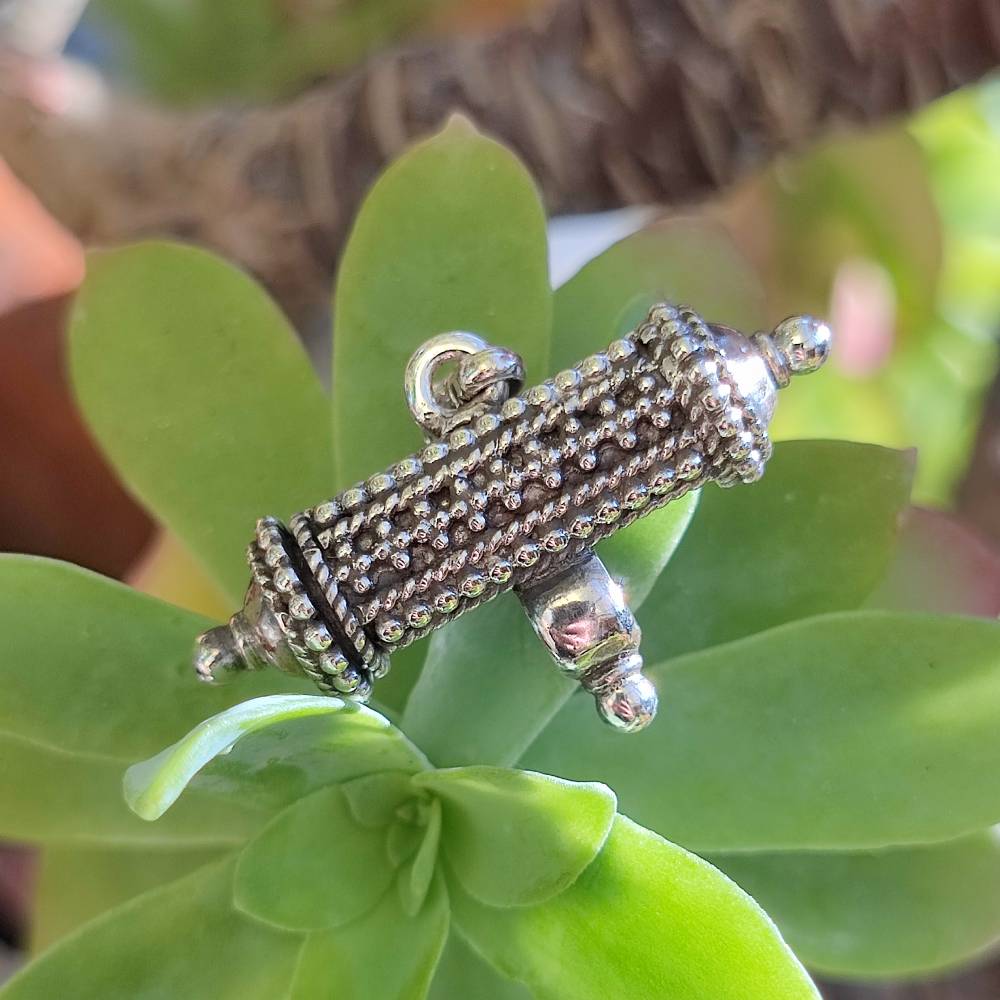 925 silver pendant with prayer holder. In India it is called thayittu , cylindrical or sometimes square or rectangular, here too a mantra or a yantra is inserted.