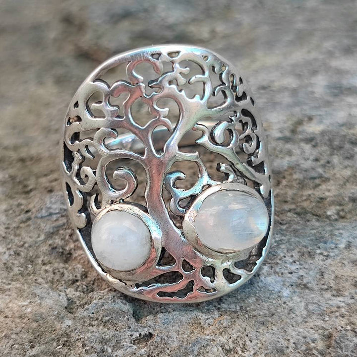 Ethnic ring in 925 silver with stone - RAMJIKA