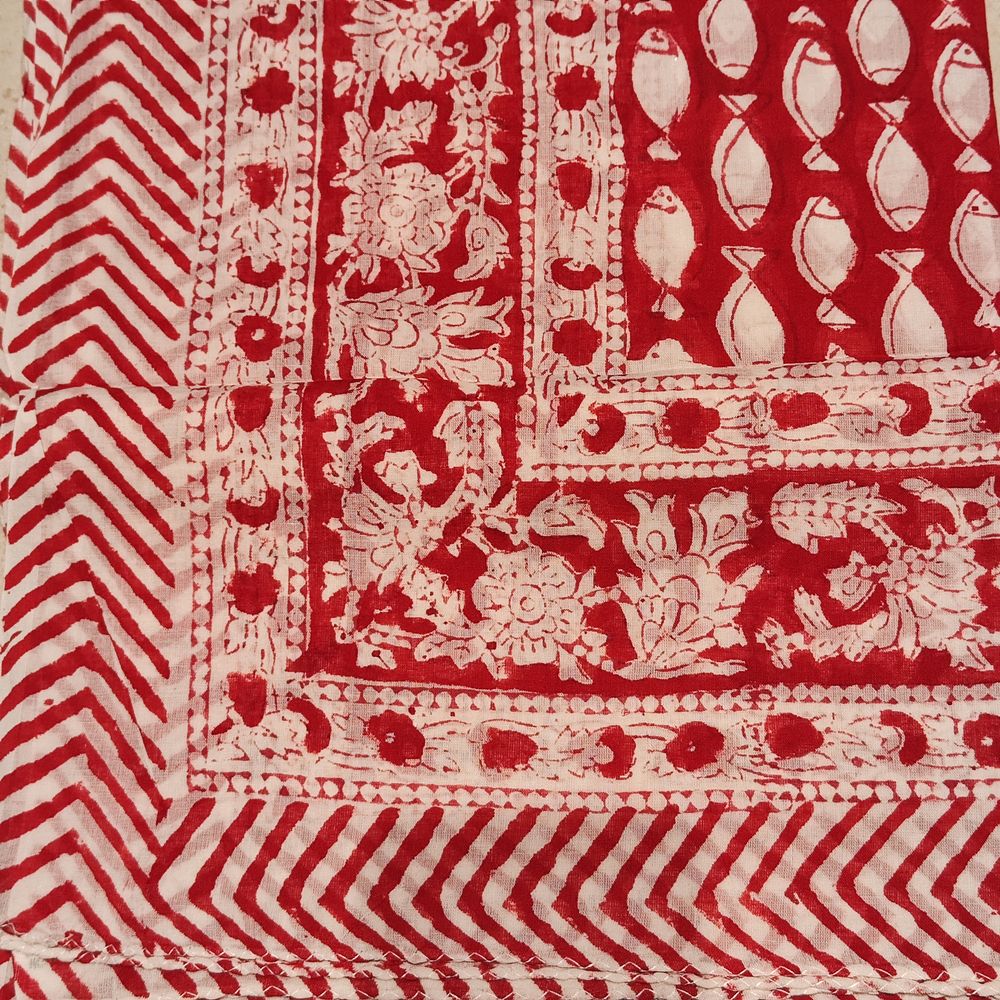 YASH cotton fish pareo made with designs made with handmade wooden stamps. Typical and traditional Indian workmanship.
