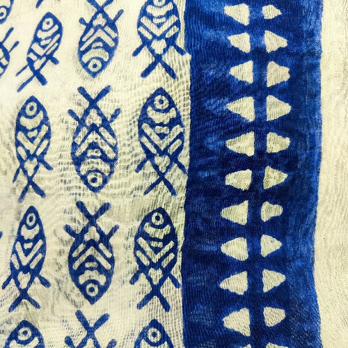 Pareo - Handmade Cotton Scarf with Fish Ornaments