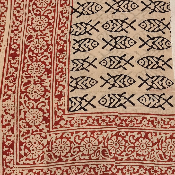 Cotton sarong made with designs made with handcrafted wooden stamps. Typical and traditional Indian workmanship.