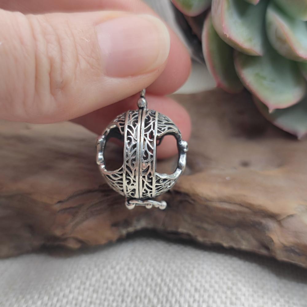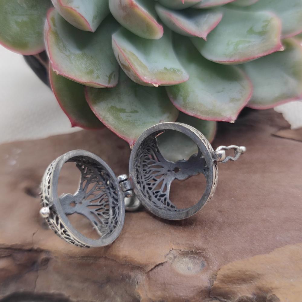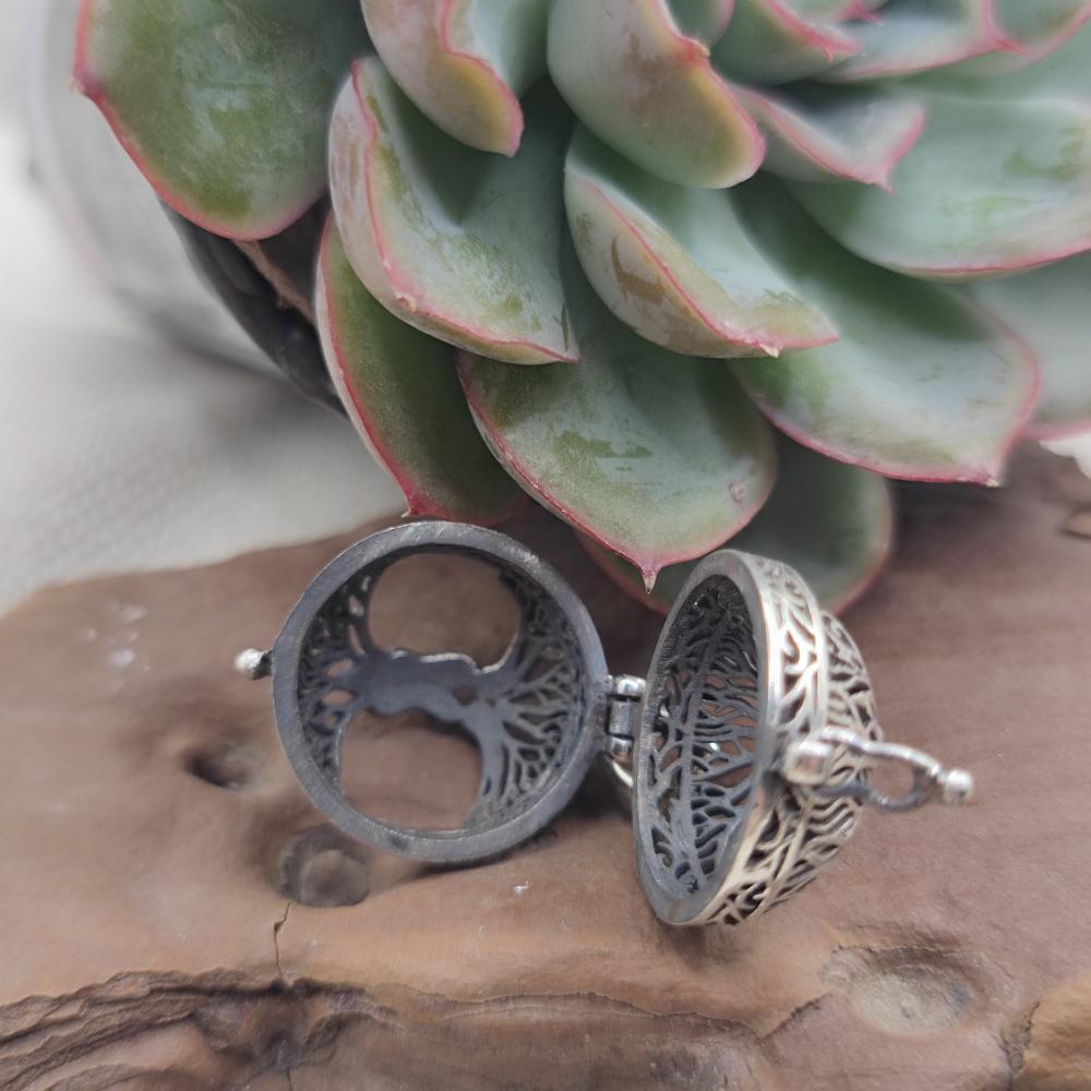 925 Sterling Silver Tree of Life Openable Pendant - SOMPETA. This 925 sterling silver openable sphere pendant is a unique and meaningful piece of jewelry. The Tree of Life, a symbol of growth, strength, and connection with nature, is finely carved at the center of the sphere, creating an elegant and profound design. The openable structure also allows for a small message or personal keepsake, making this pendant even more special.