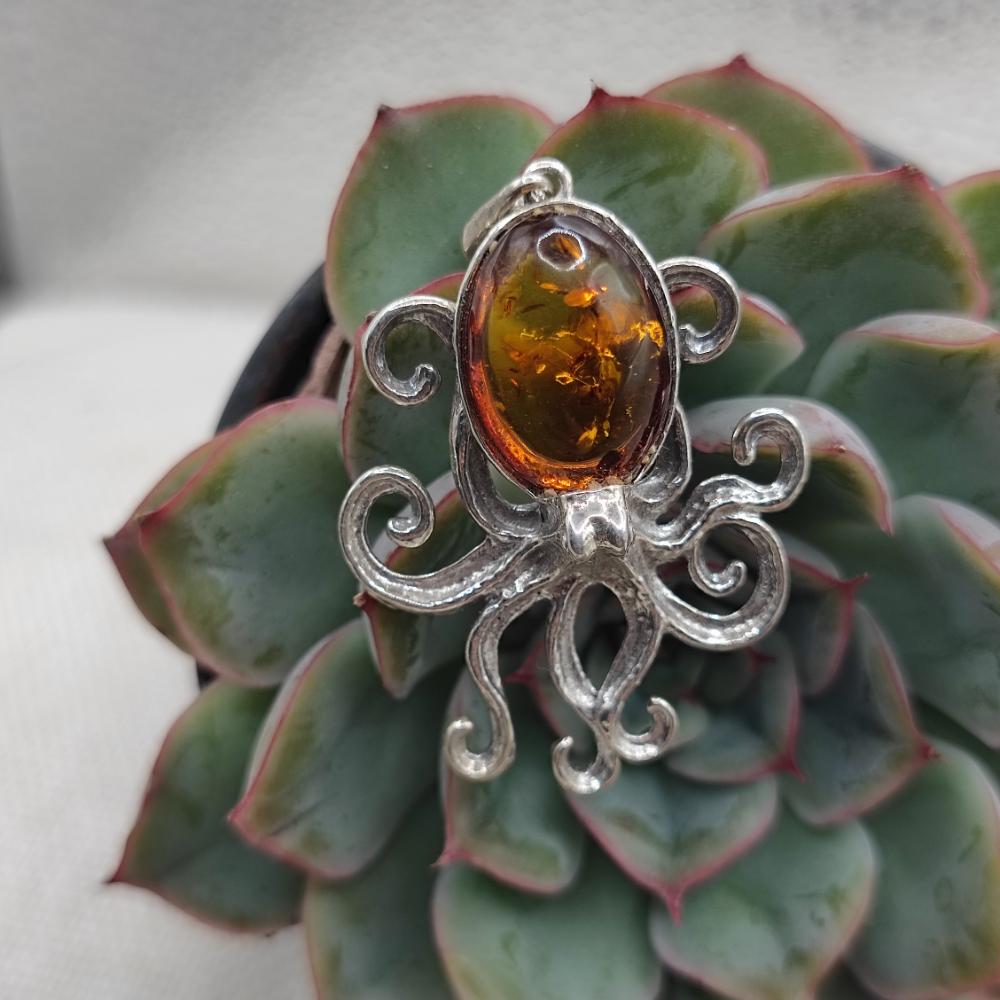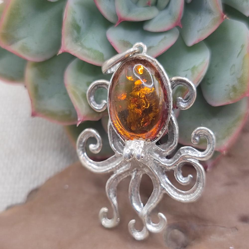 925 Silver Octopus and Amber Pendant - RAMESWARAM