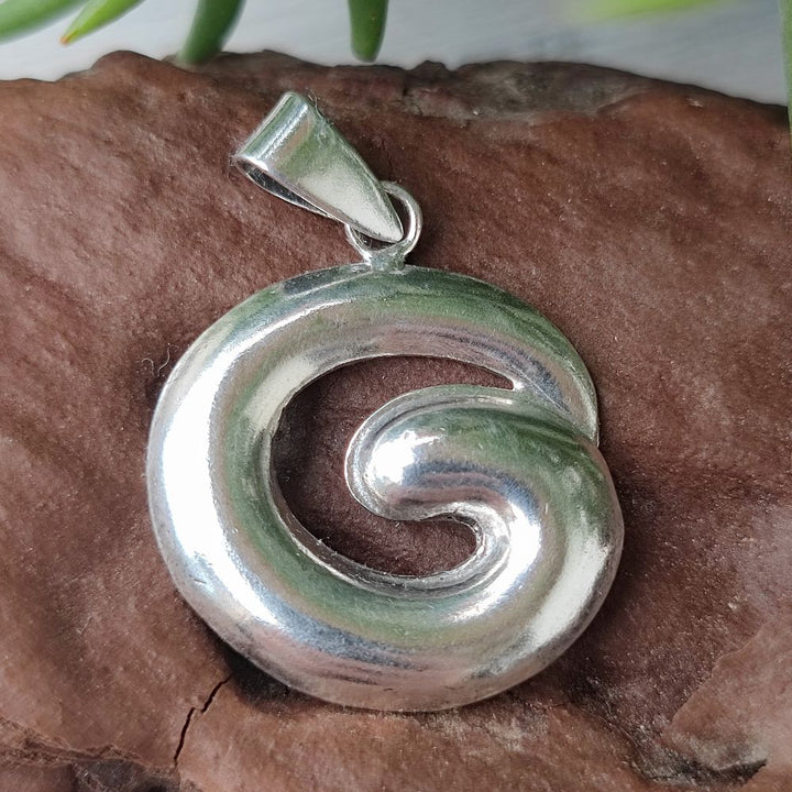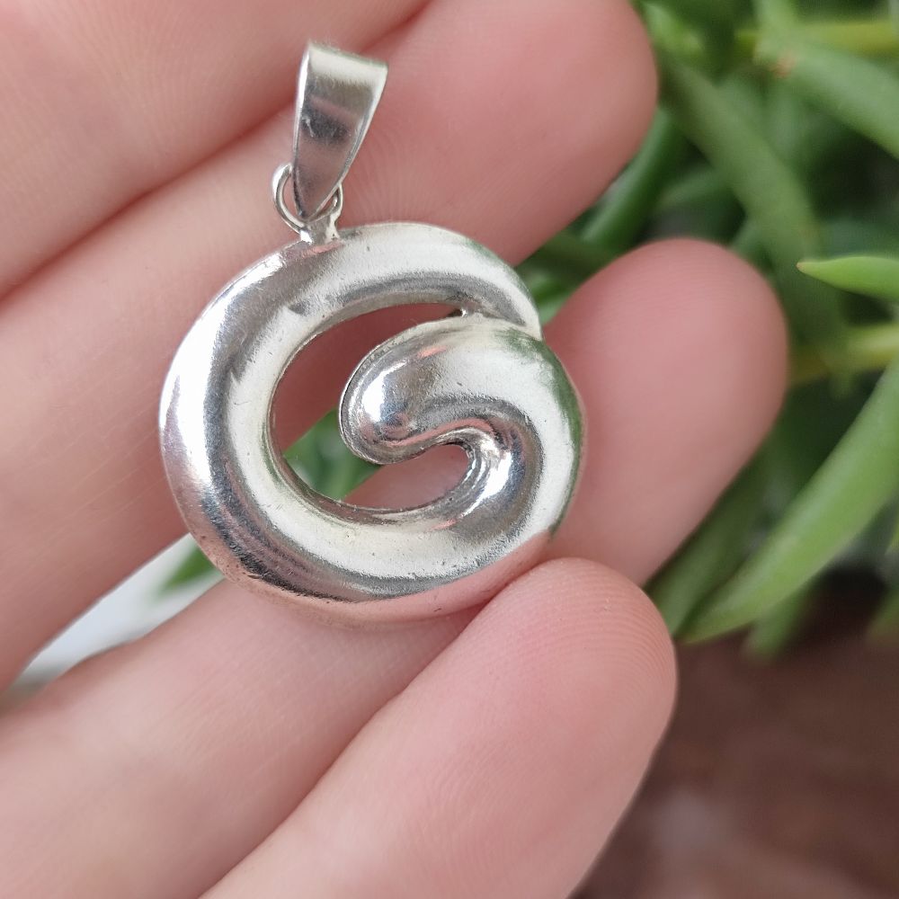 Handmade 925 Silver Pendant - PINKASURATE. A silver pendant with a modern, linear and smooth design that recalls a stylized spiral. Elegant and bright, ideal for every look.