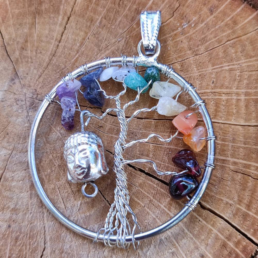 Discover all the specifications of this TREE OF LIFE pendant with stones and Buddha !