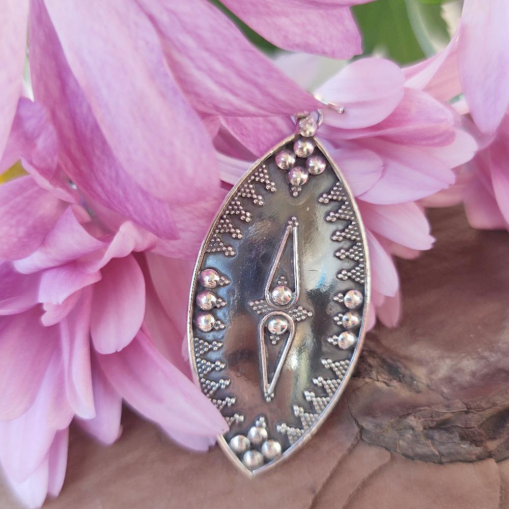 The handcrafted partially burnished silver earrings are unique and fascinating pieces of jewelry. These earrings are carefully crafted by skilled artisans who work silver with traditional techniques to create a distinctive and detailed design.