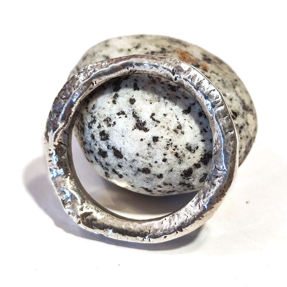 L’anello è originale e particolarissimo. La lavorazione artigianale che utilizza schegge di turchese, corallo e corallo bambù consente di acquistarlo ad un prezzo piccolissimo. In realtà proprio l’utilizzo di piccole schegge di gemme genera una decorazione a mosaico irregolare che è bellissima, oltre a rendere l’anello un esemplare da collezionisti di gioielli etnici in quanto il tipo di lavorazione è specificamente nepalese/tibetana. Splendida anche la conchiglia ciprea che funge da gemma centrale. I venditori sono sempre gentilissimi, disponibili e attenti.