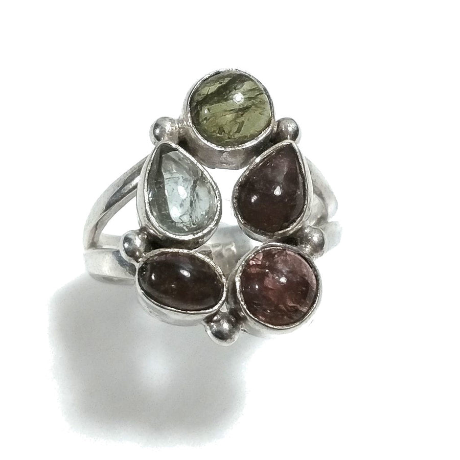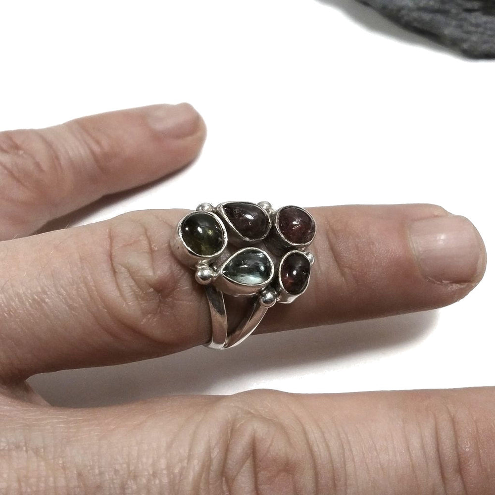 Anello con pietra in argento 925 con Tormalina rosa, Tormalina verde | GIOIELLI IN ARGENTO
