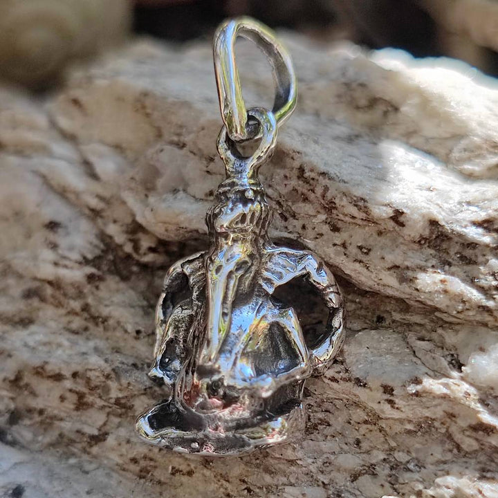 Ciondolo Ganesh in argento 925 - MAKRANA. Il ciondolo riproduce il dio Ganesh, primo figlio del dio Shiva e della sua consorte Parvati, è rappresentato con una testa di elefante dotata di una sola zanna, con l’addome sporgente e quattro braccia.