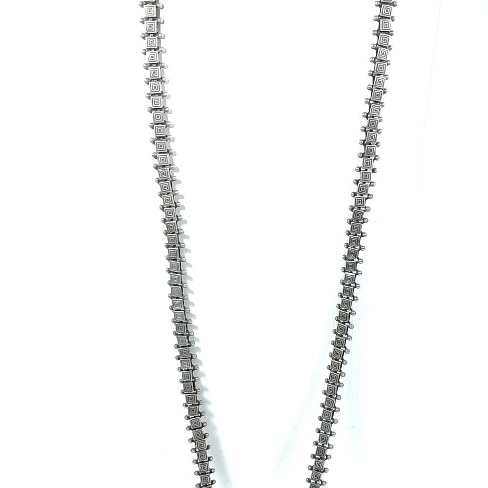 Collana morbida realizzato in argento 800. La sua superficie è parzialmente brunita.